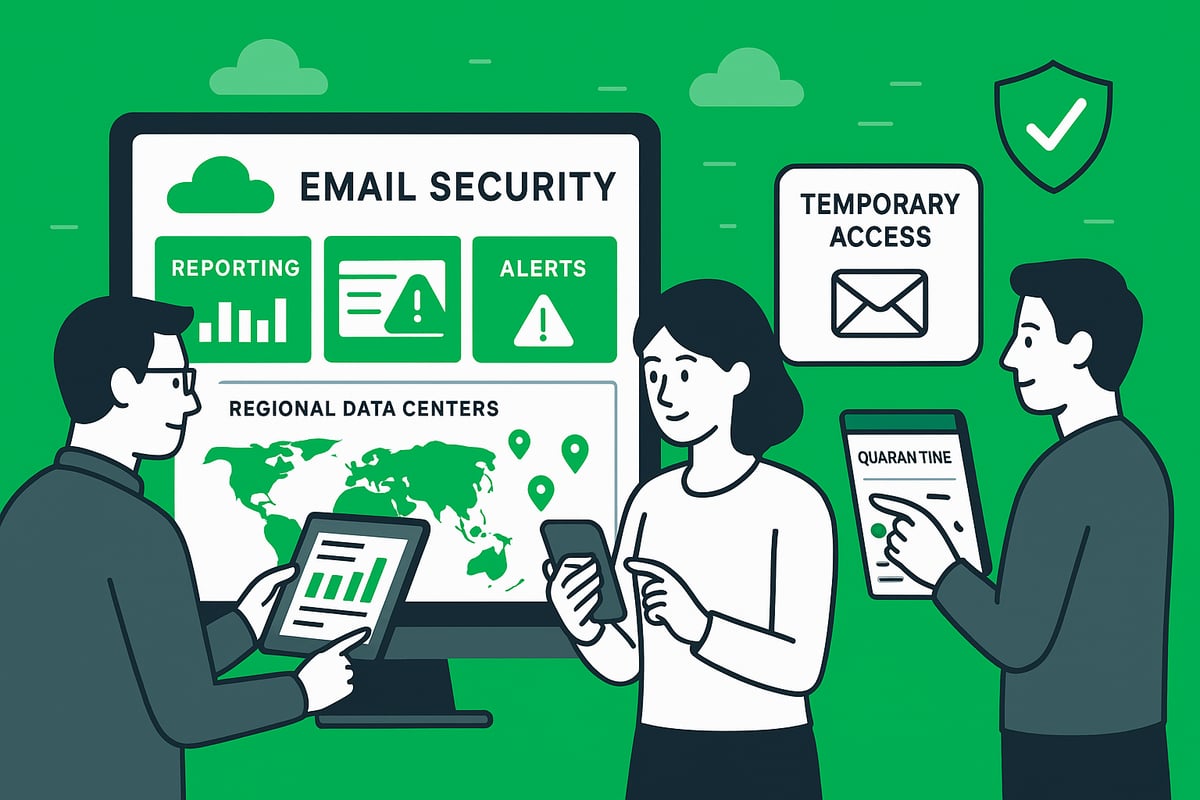 - Spam, virus, worm, phishing, and DDoS protection: Multiple filters inspect each message for known and emerging threats.
